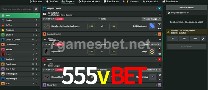 O 555vbet oferece uma grande seleção de opções de apostas em e-sports com probabilidades competitivas